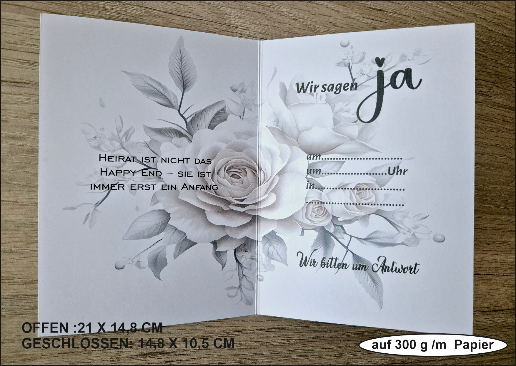 12 STK- Einladungskarten Klappkarte mit Innentext -Inklusive Briefumschlag