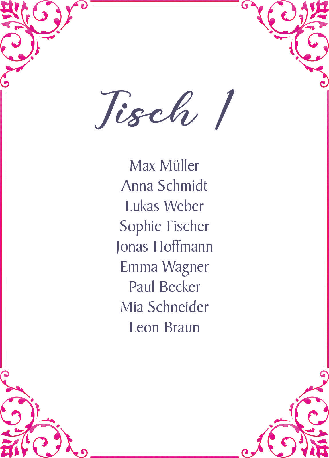 Pink Sitzplan 10 stk
